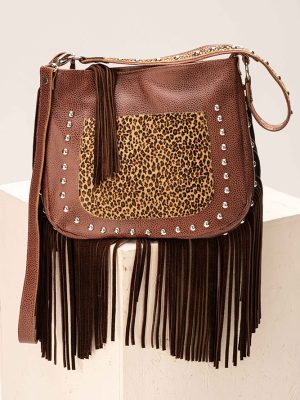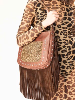Cartera Valencia / Cuero Tabaco + Cuero Animal Print + Gamuza Chocolat
